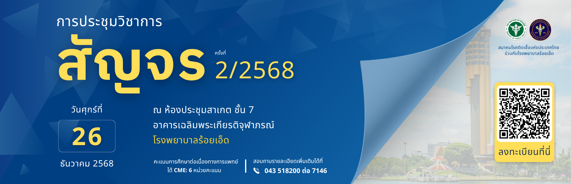 10 มีนาคม 2568 ขอเชิญเข้าร่วมการประชุมวิชาการประจำปี 2568 "UPDATE INFLUENZA AND OTHER RESPIRATORY INFECTION OF THE YEAR 2025"