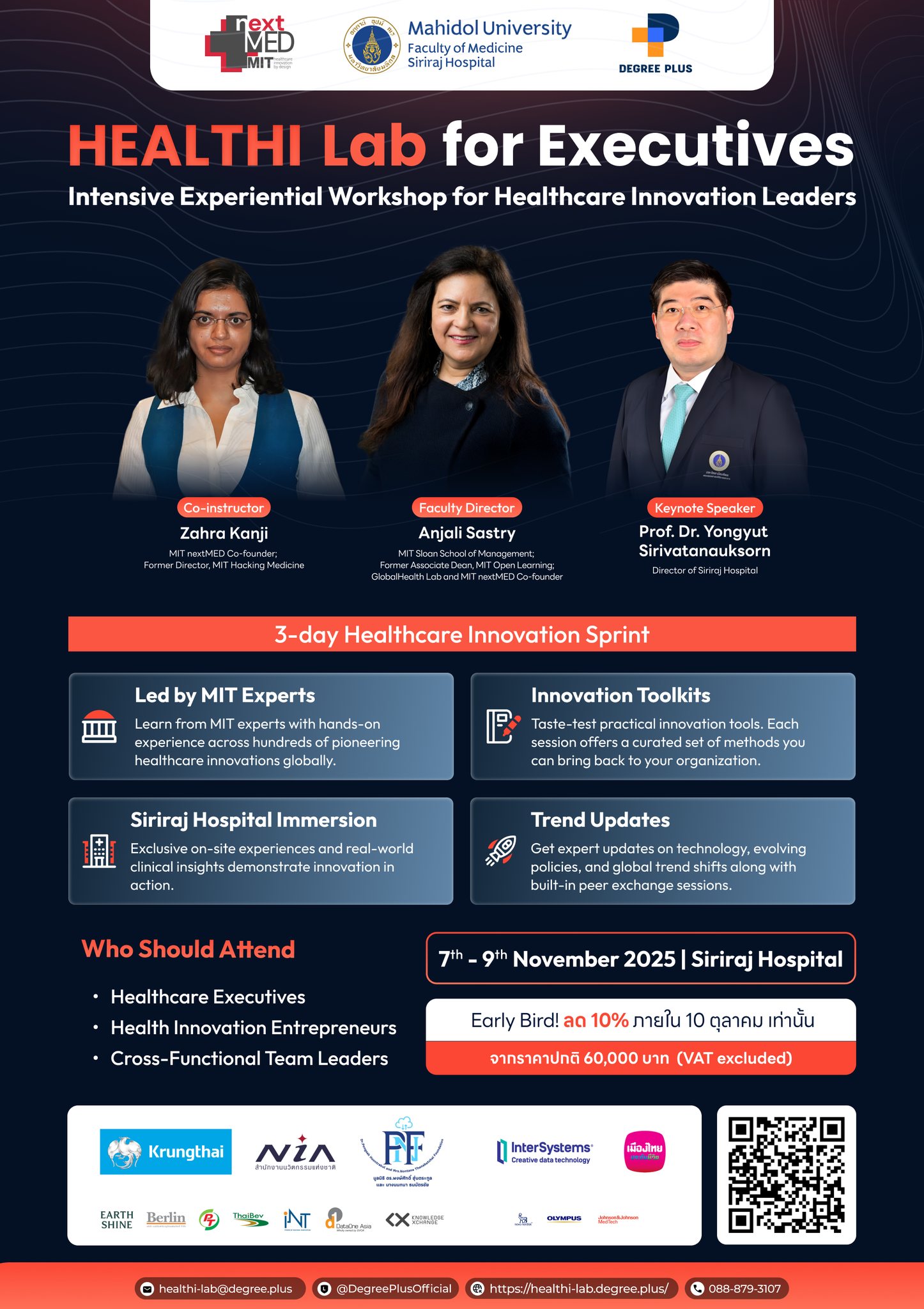 เปิดรับสมัครแล้ว! หลักสูตรผู้บริหาร HEALTHI Lab for Executives จาก รพ.ศิริราช, MIT nextMED และ Degree Plus