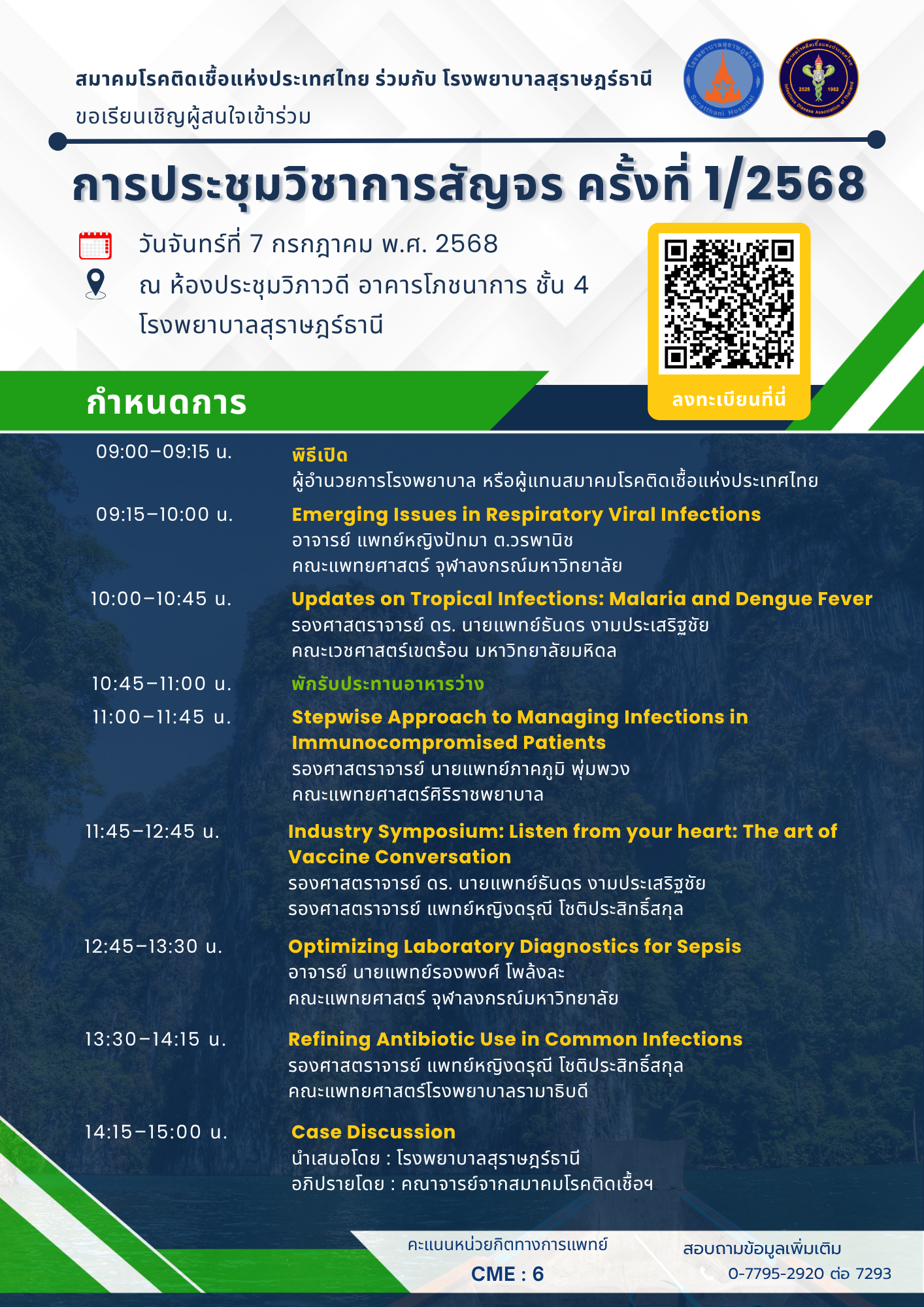 สมาคมโรคติดเชื้อแห่งประเทศไทย ร่วมกับ โรงพยาบาลสุราษฏร์ธานี
