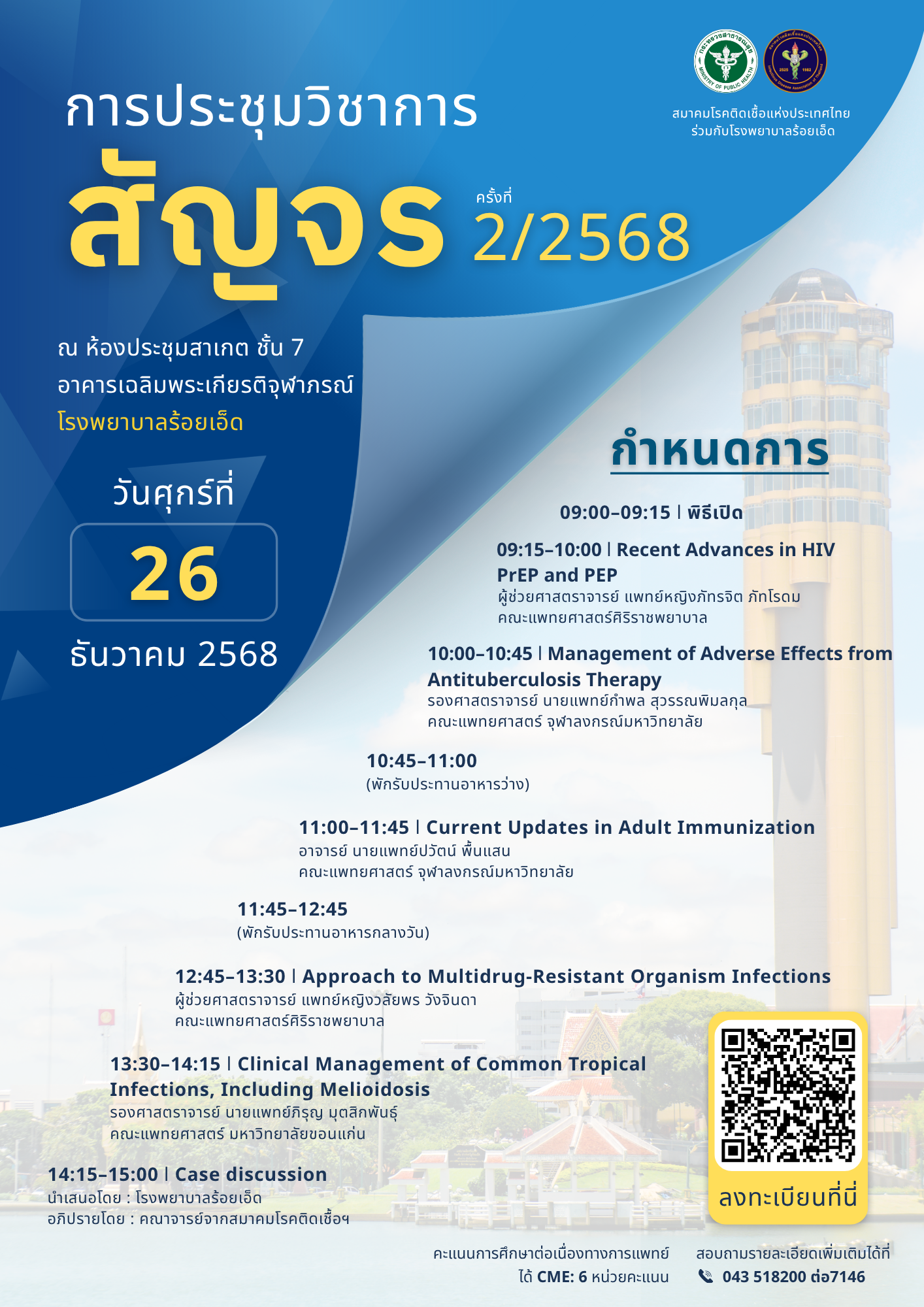 สมาคมโรคติดเชื้อแห่งประเทศไทย ร่วมกับ โรงพยาบาลร้อยเอ็ด